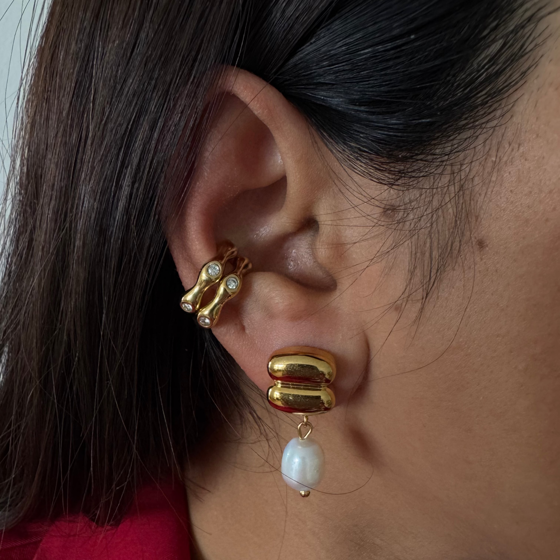 Timeless elegance meets modern form. These 304 stainless steel earrings featuring sculptural domes paired with freshwater pearl drops. The perfect Riviera inspired balance of edge and softness. Lightweight, hypoallergenic, and designed to elevate your everyday chic.
