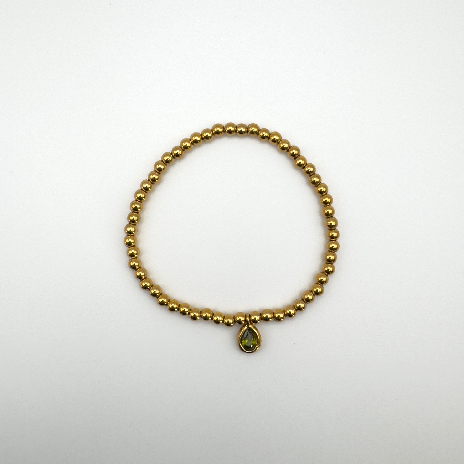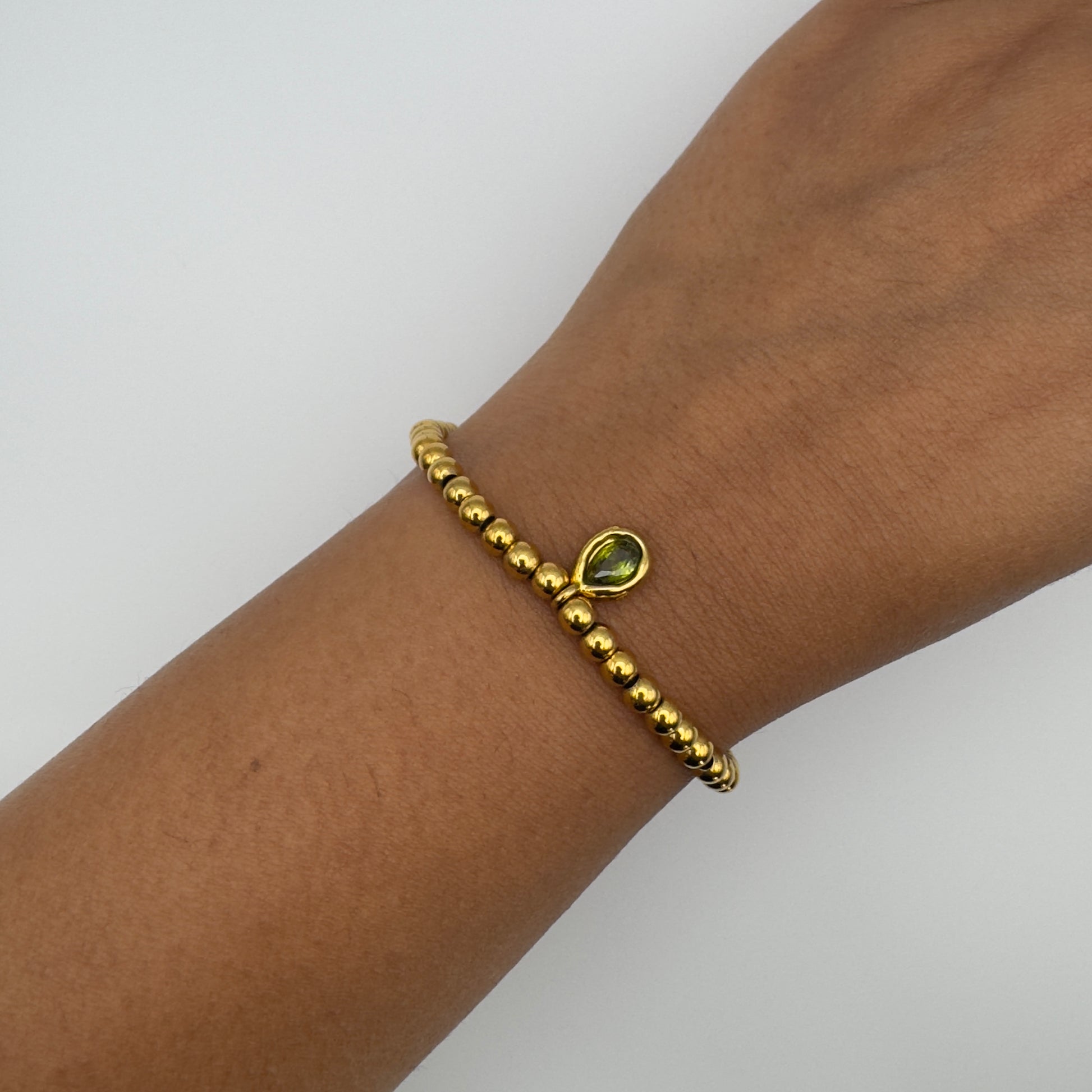 A timeless piece that blends simplicity with sophistication, the Emerald Beaded Bracelet features polished gold beads accented by a teardrop emerald charm. Its stretch-fit design makes it easy to wear and style, whether layered with other bracelets or worn solo for understated elegance. A versatile everyday essential with a refined touch.