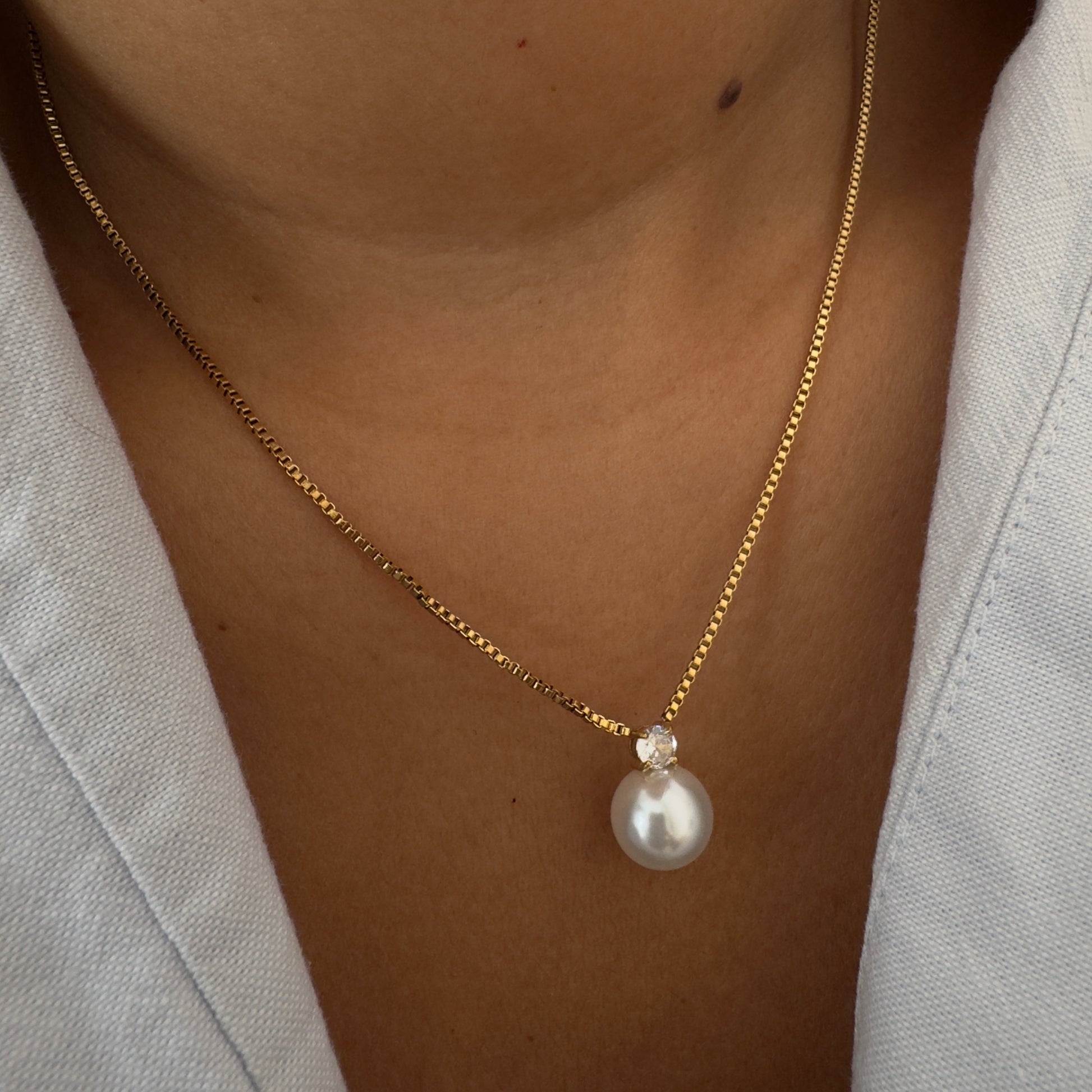 A single pearl crowned with a sparkling crystal on a fine gold chain — the definition of timeless elegance. Wear it solo for understated sophistication or pair it with layers for a modern, elevated look from day to night.