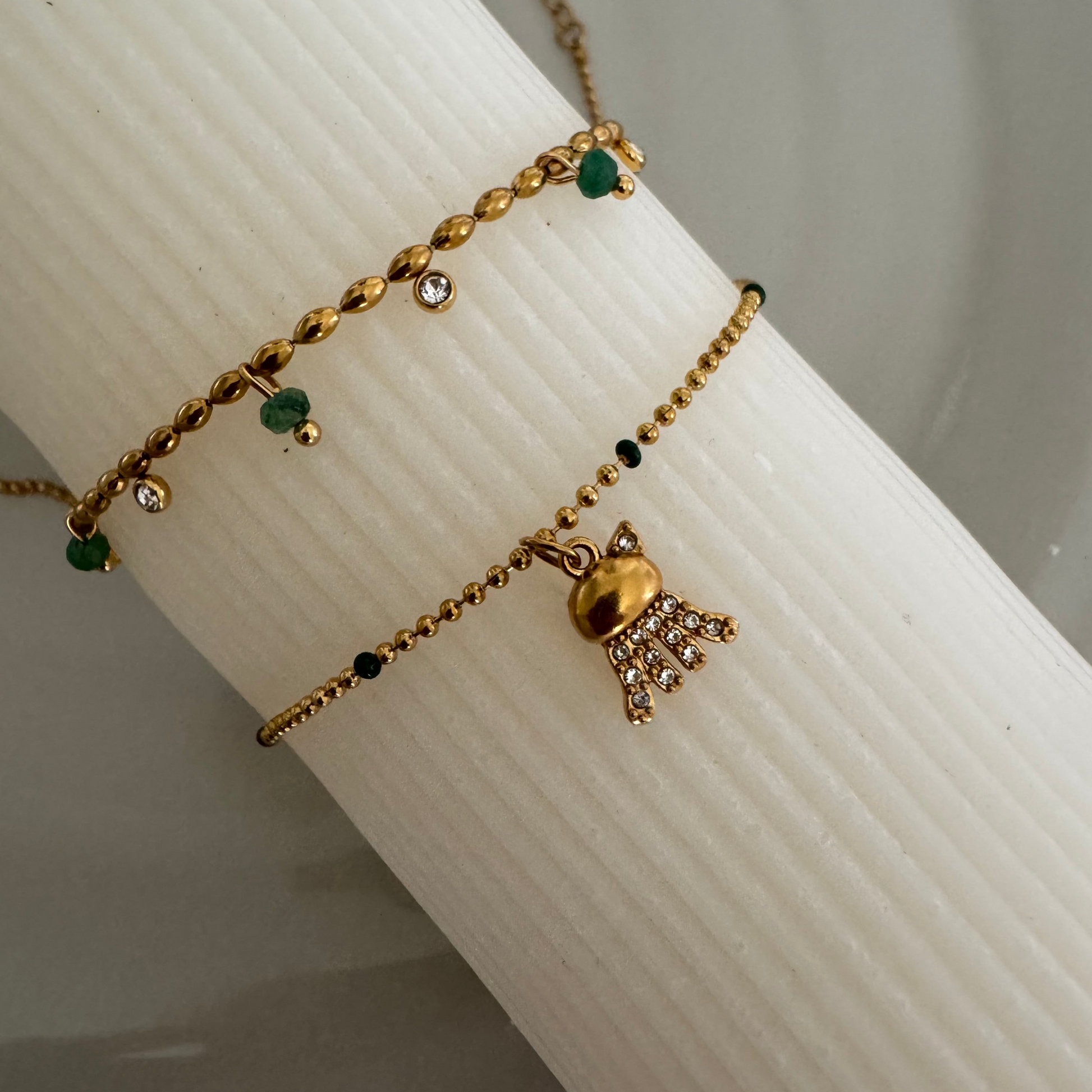This minimal necklace featuring a gold-plated jellyfish pendant with shimmering zircon detailing, it’s a statement of elegance and whimsy. Lightweight yet bold, this necklace is perfect for sunlit escapes, coastal dinners, or adding a dreamy marine touch to your everyday style.