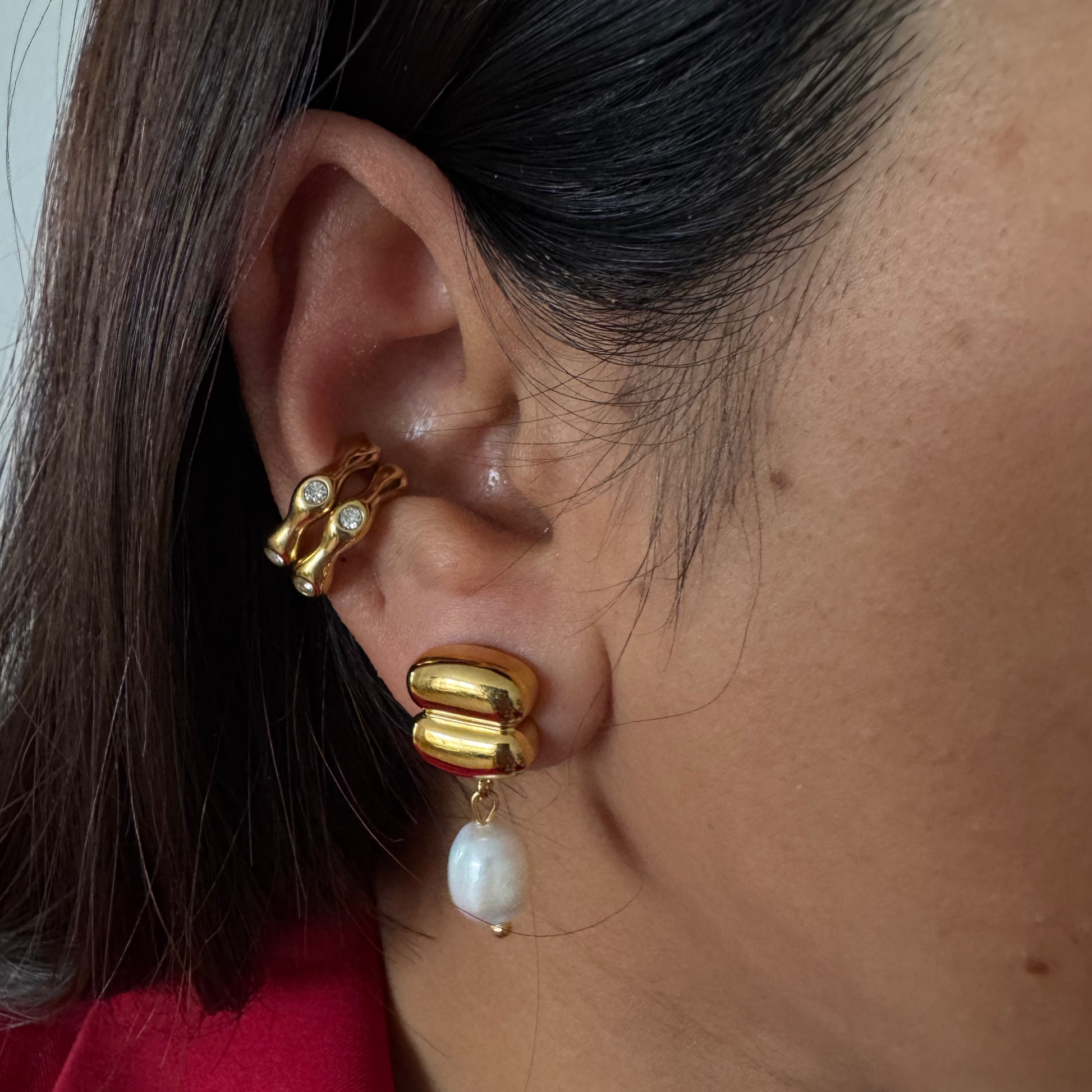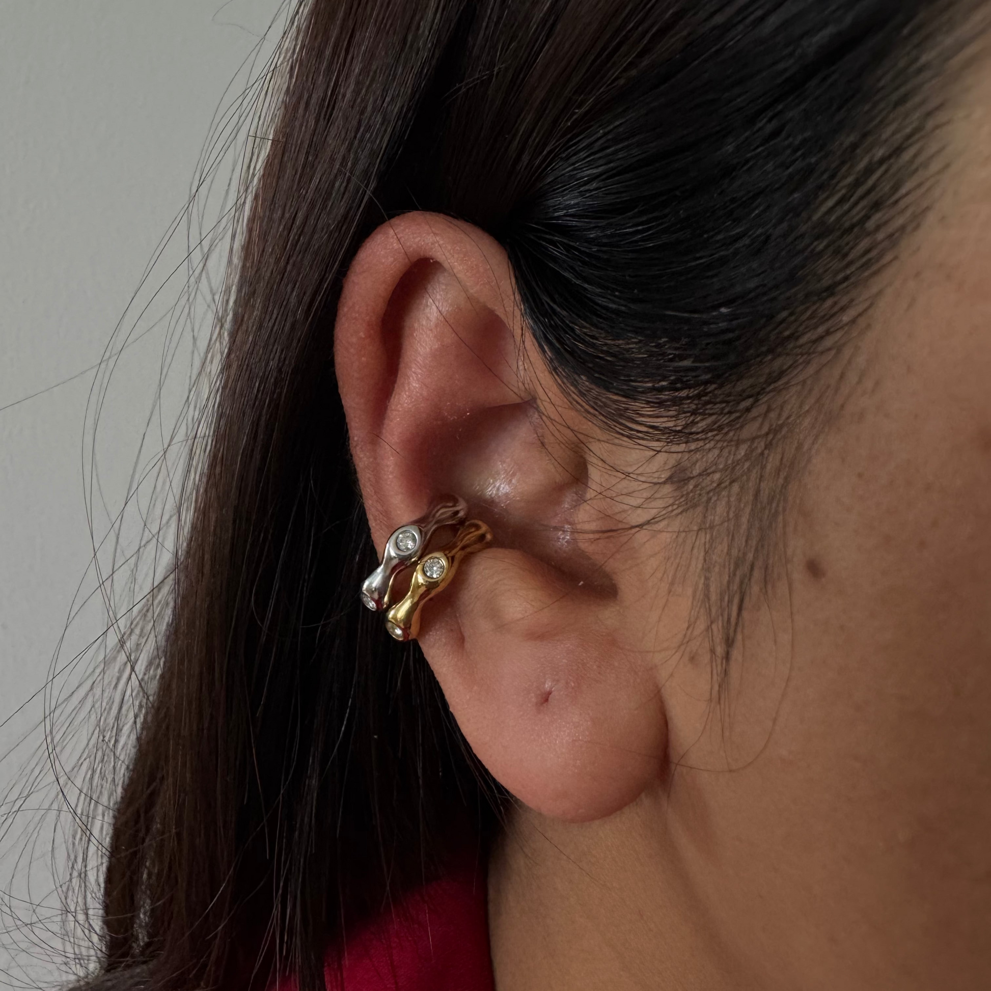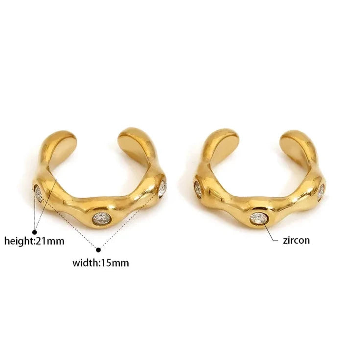 Sleek, sculpted gold-tone ear cuffs with a molten finish and zircon accents. Lightweight and non-pierced, they add an edgy-glam touch to any look. No commitment, just style!